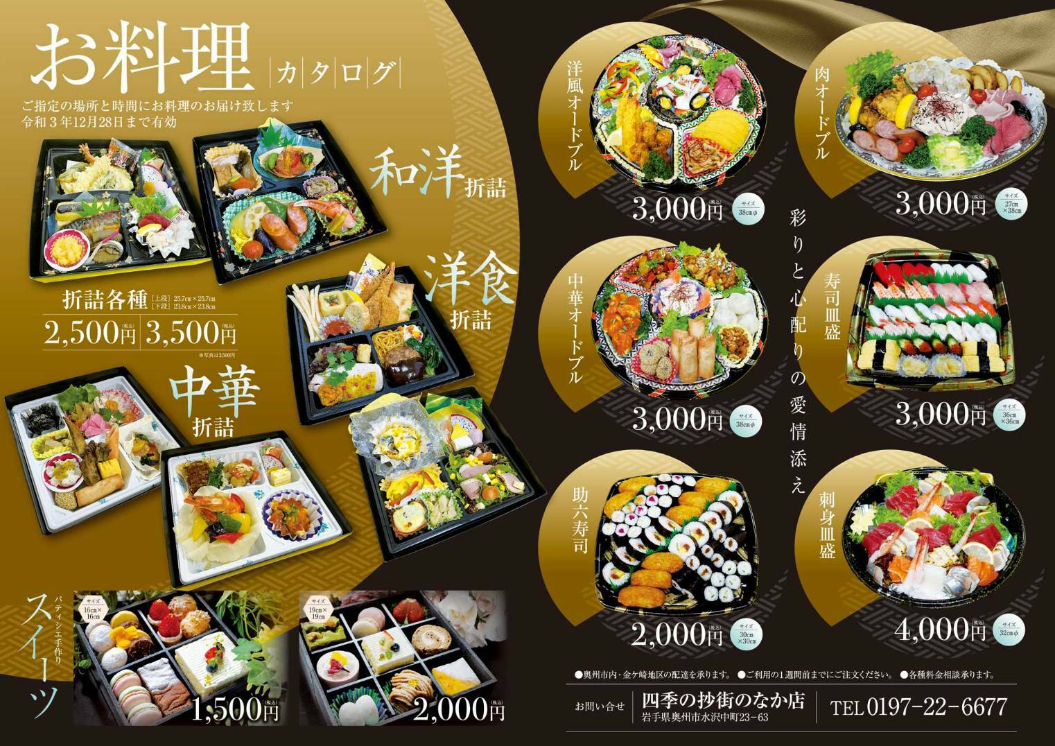 お料理カタログをご覧ください【ご指定の場所と時間にお料理をお届け致します!】